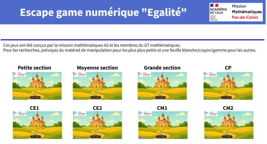 – un escape game numérique pour chaque niveau, dès le cycle 1 ;